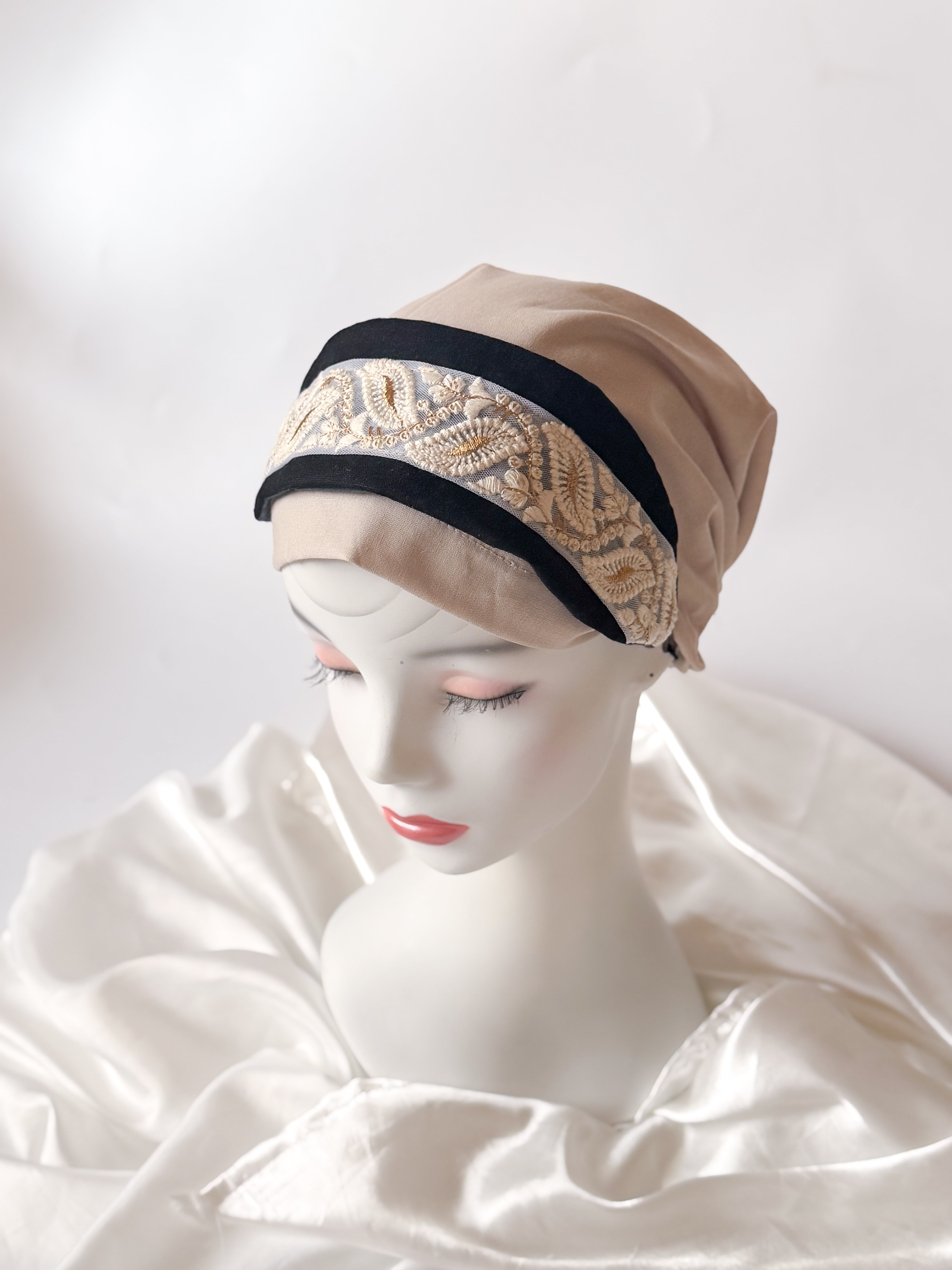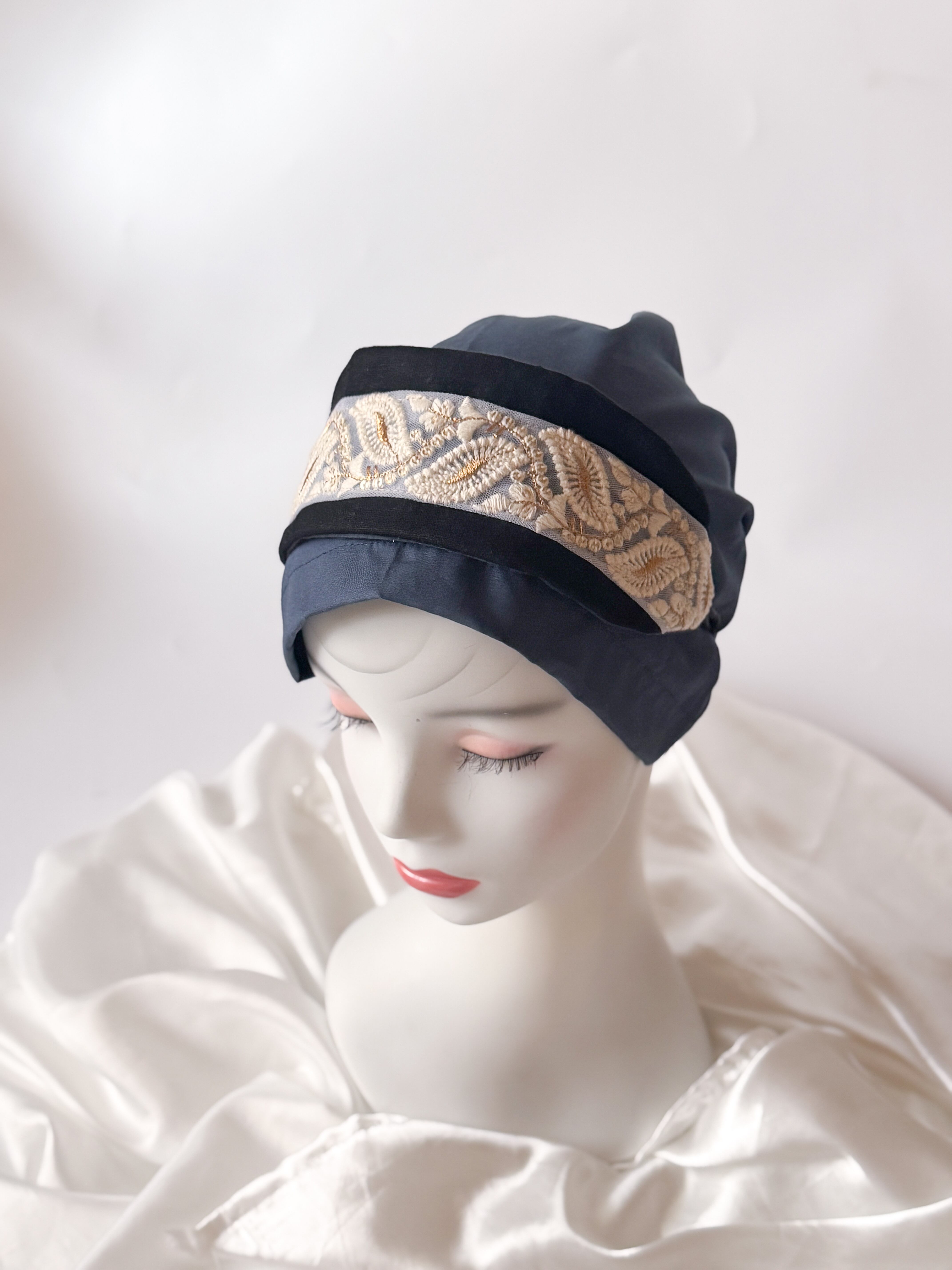 【限定】インド刺繍リボン の 上品 ヘアバンド 痛くならない お出かけ エレガント 楽ちん ドレスアップ プレゼント ギフト オプションキャップ
