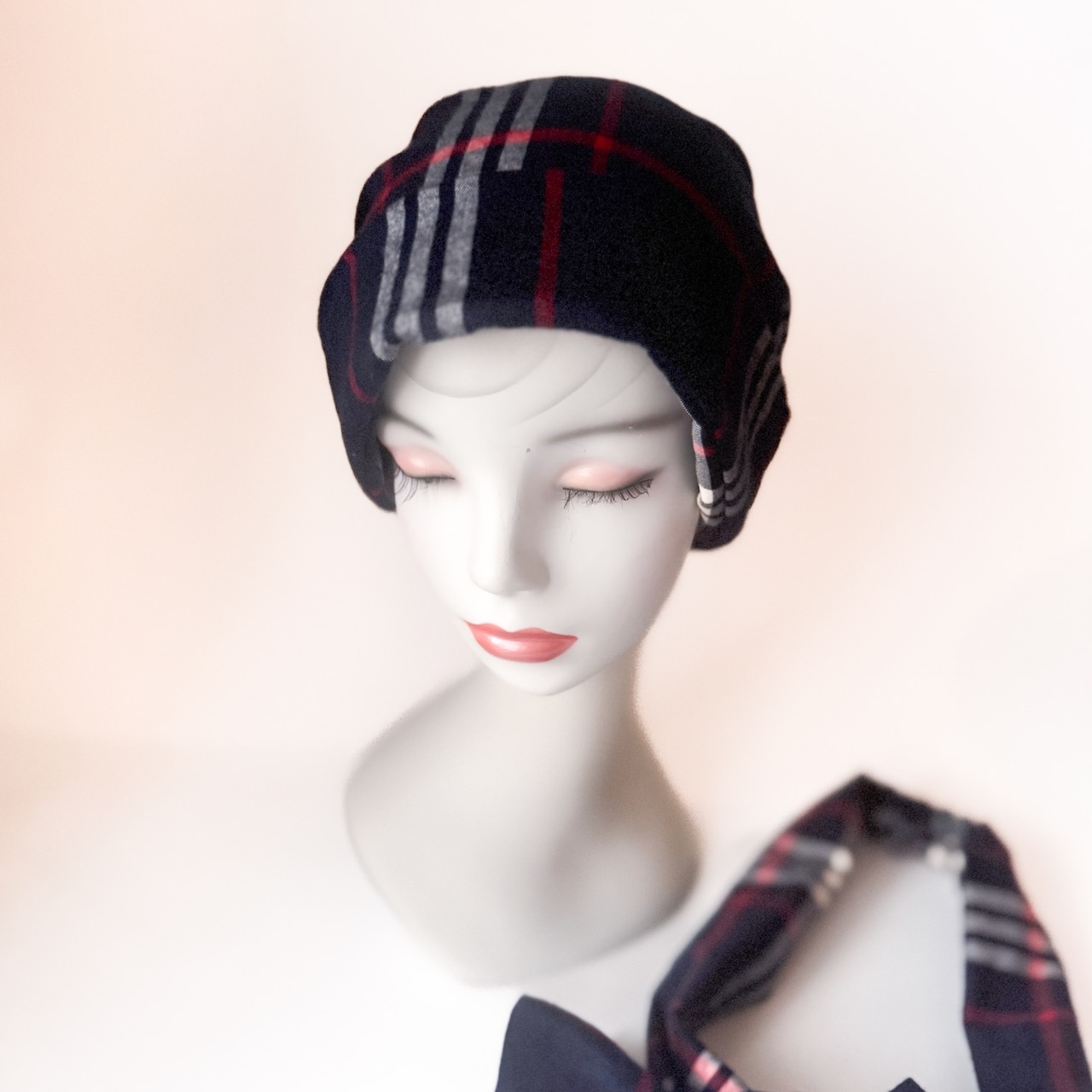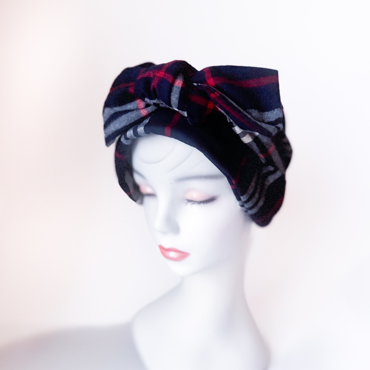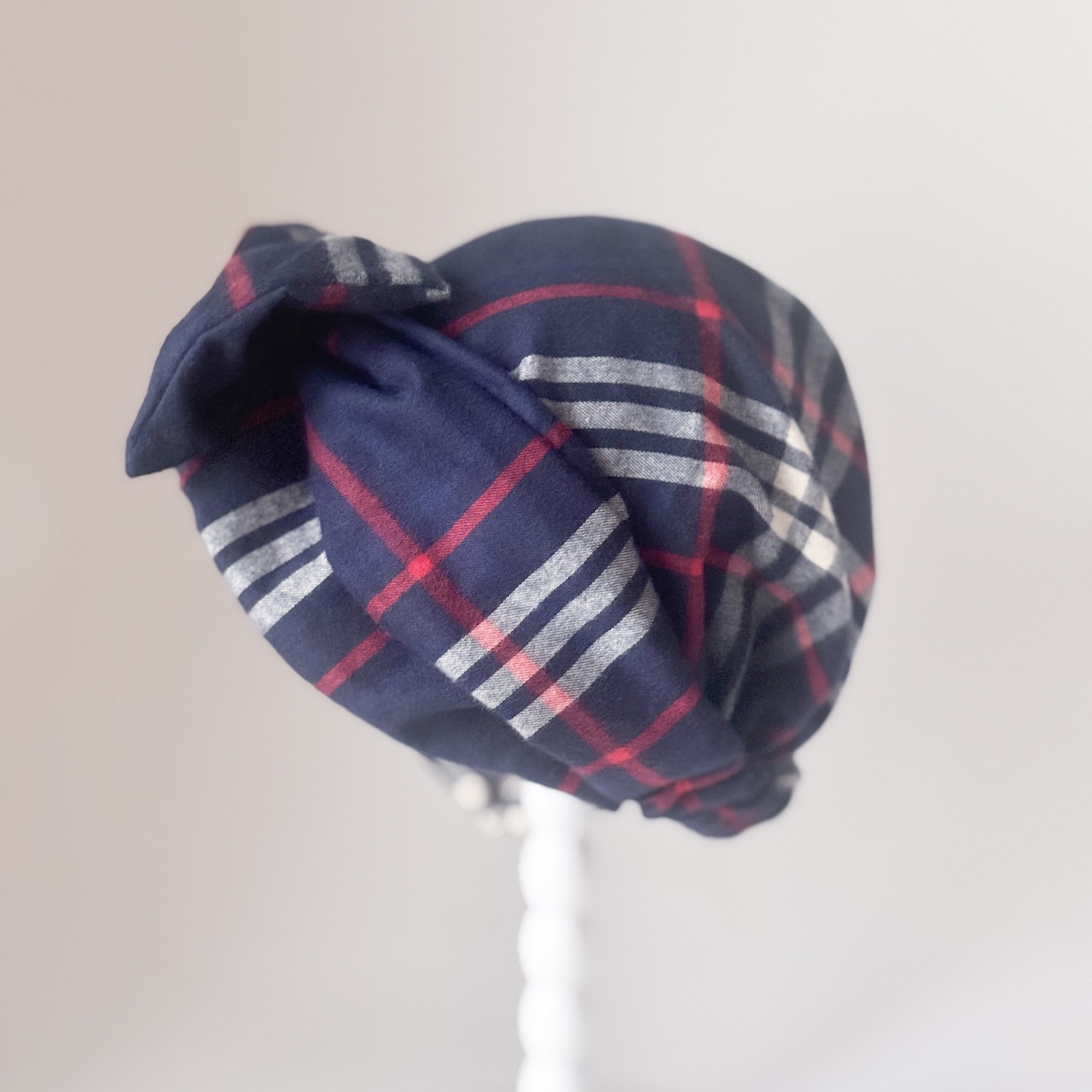 ★数量限定★ リラックス ちょっとお出かけ 着せ替え★ターバンキャップ ネイビー系チェック ケア帽子 プレゼント