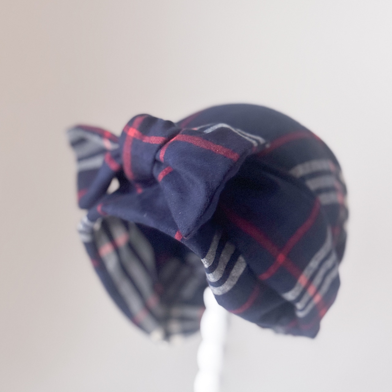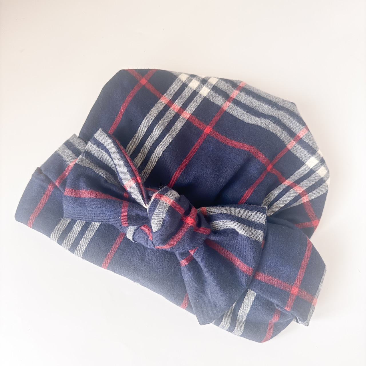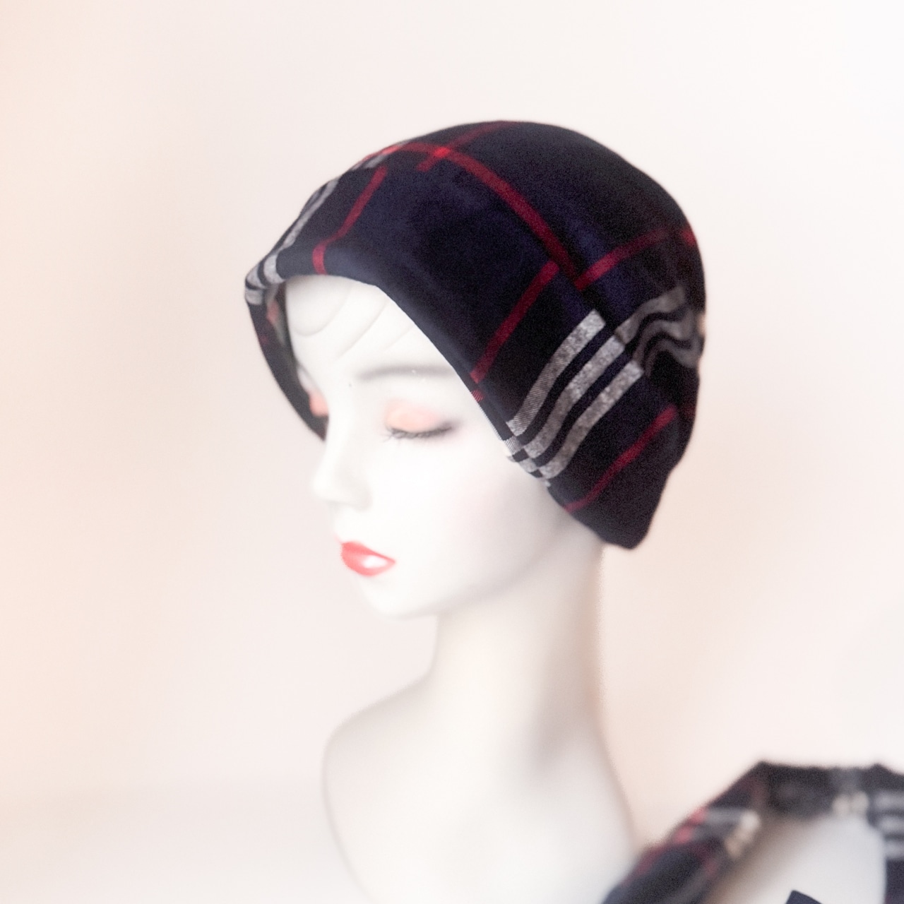 ★数量限定★ リラックス ちょっとお出かけ 着せ替え★ターバンキャップ ネイビー系チェック ケア帽子 プレゼント