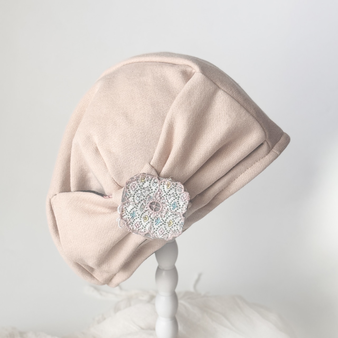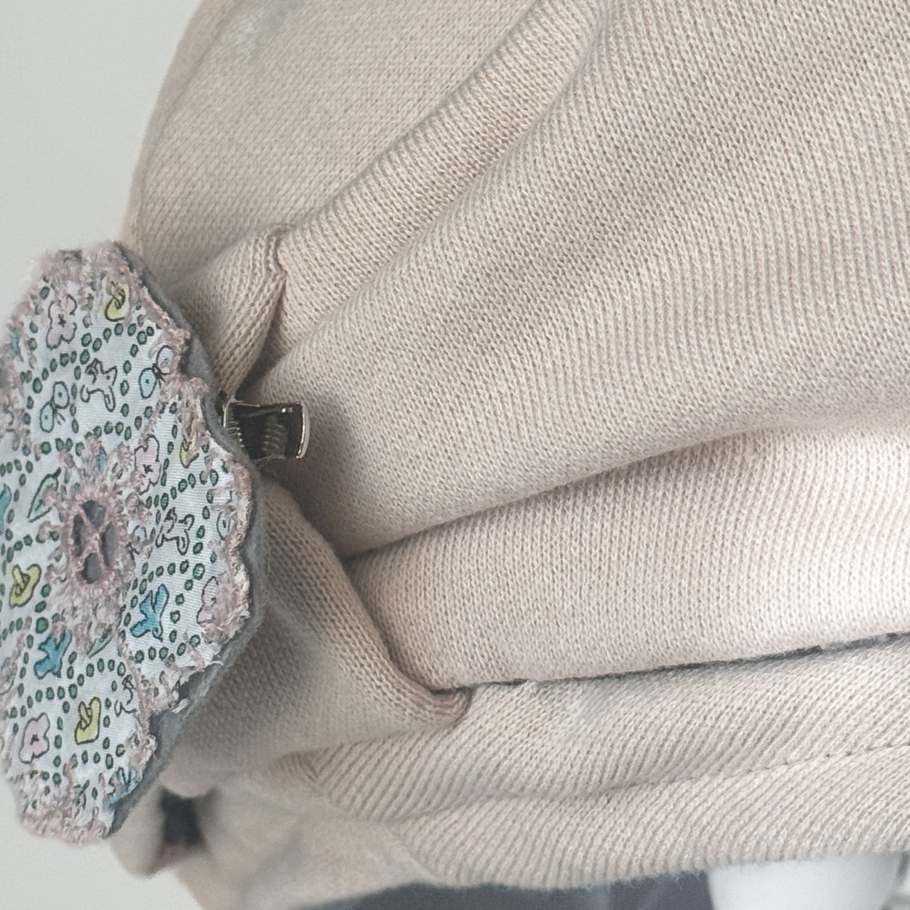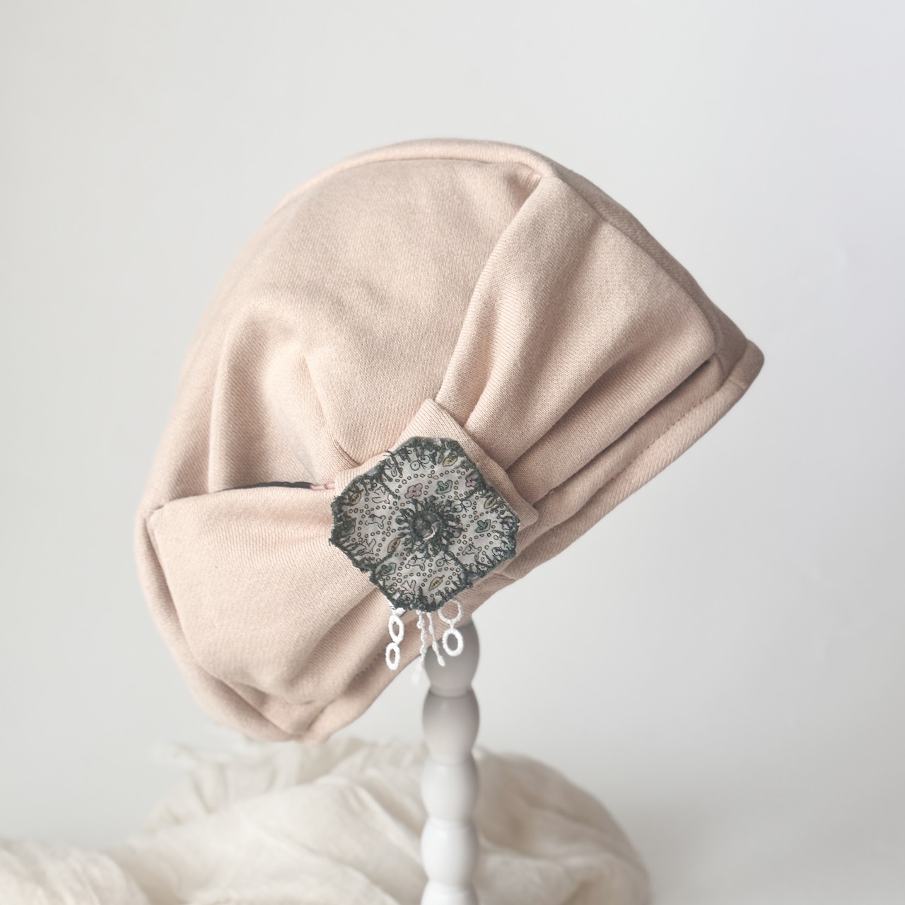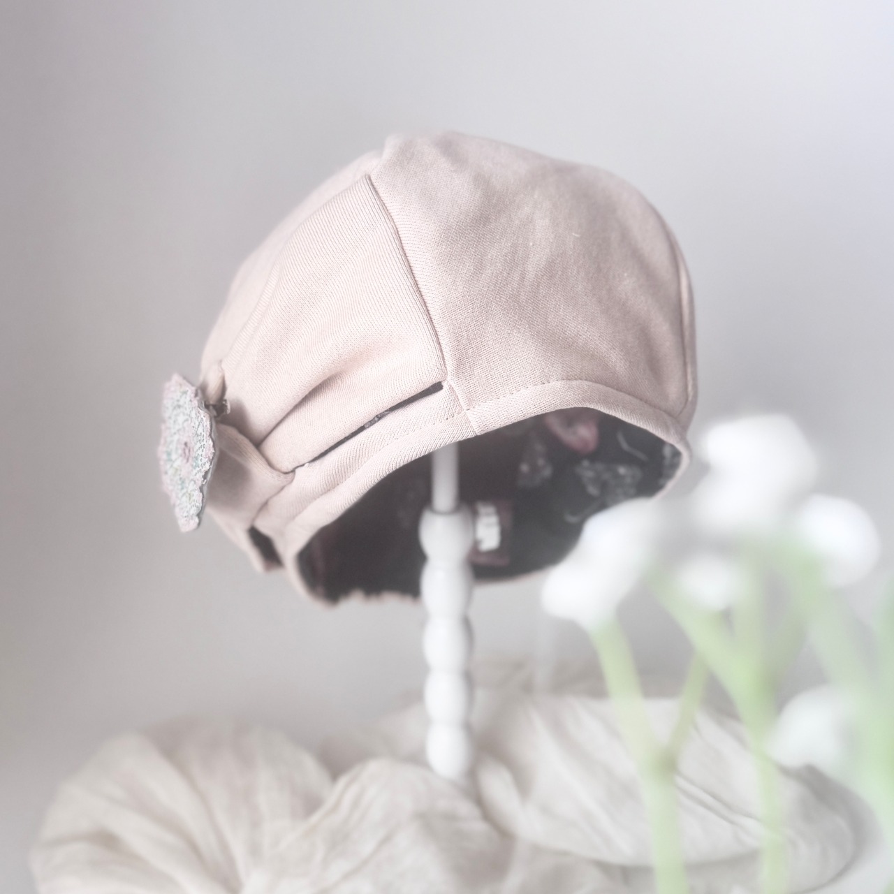 リボンベレー帽 ベージュスウェット ケア帽子 ブローチ付き