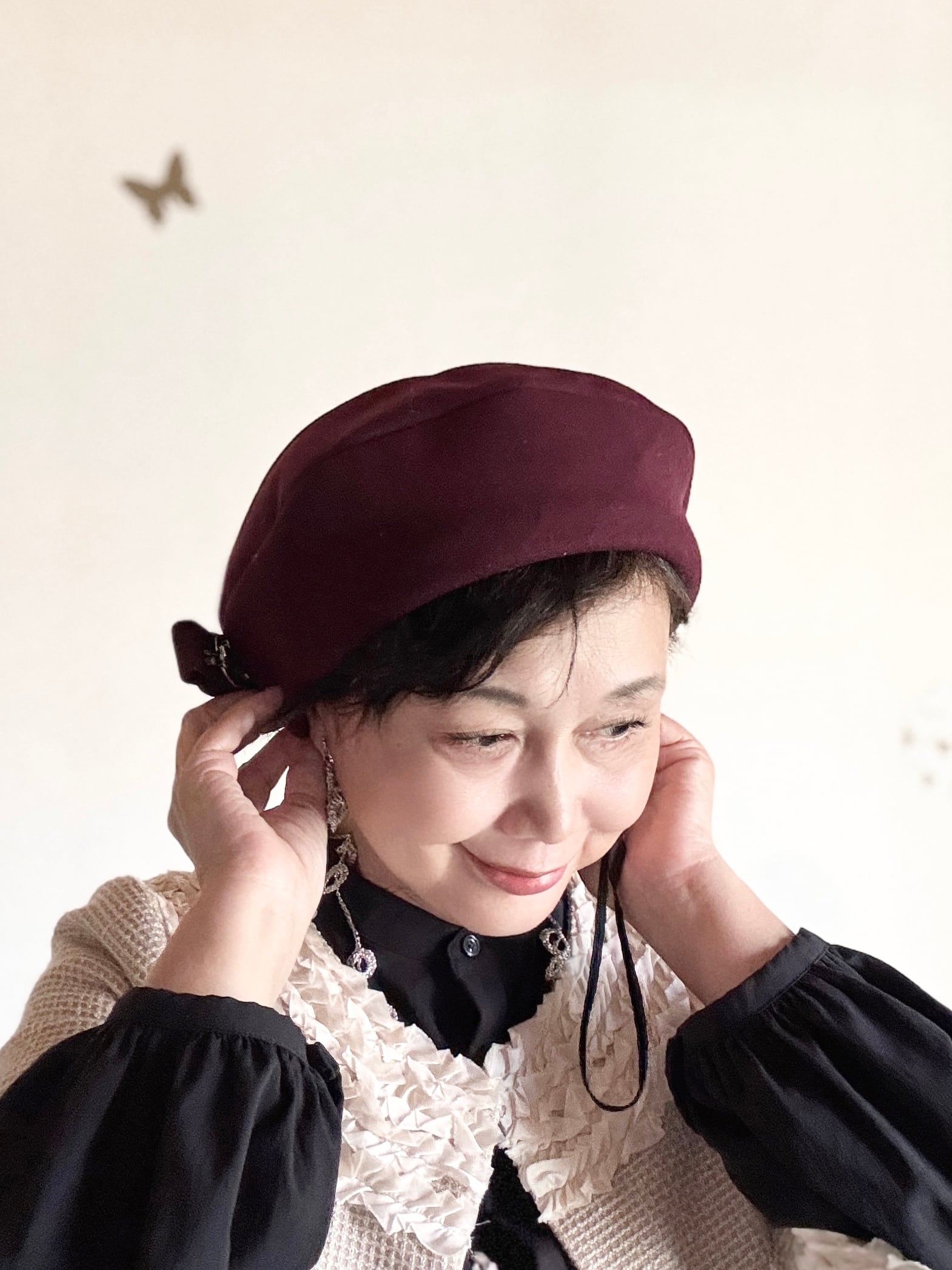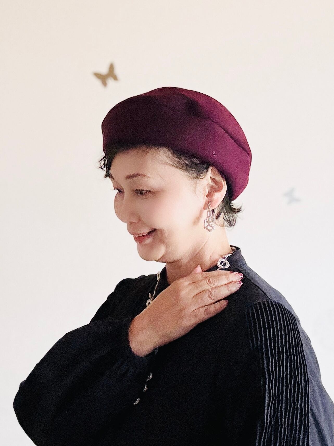 【限定1点】サニーサークルベレー帽〈ボルドー〉/秋冬に映える上品カラー ケア帽子 ゆったり プレゼント