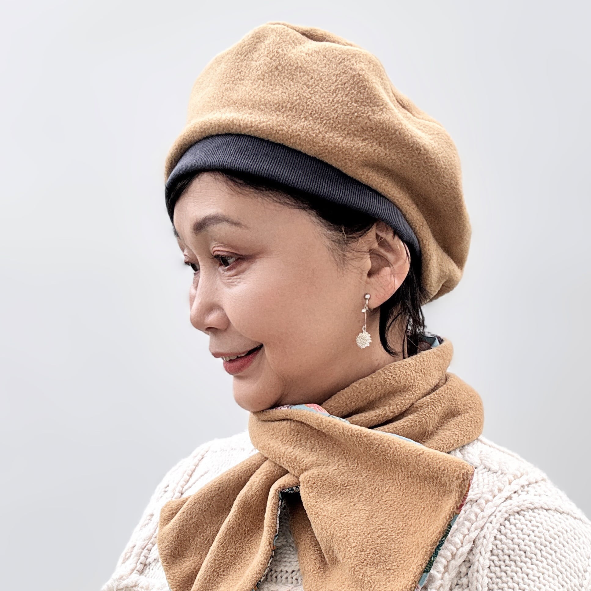 あったかフリース ベレー帽 毛玉防止加工 ケア帽子 ふんわり軽い 医療用帽子 レディース