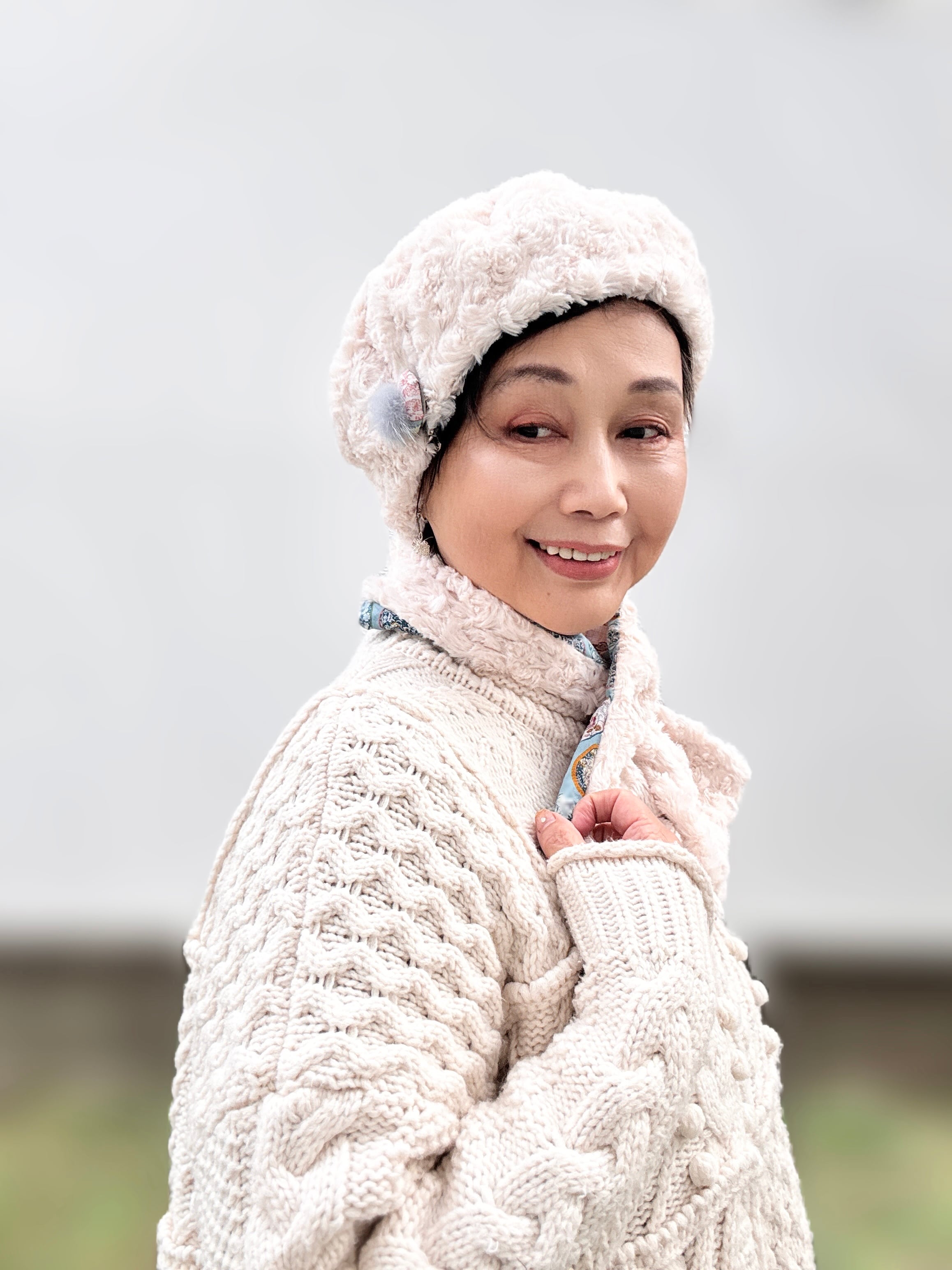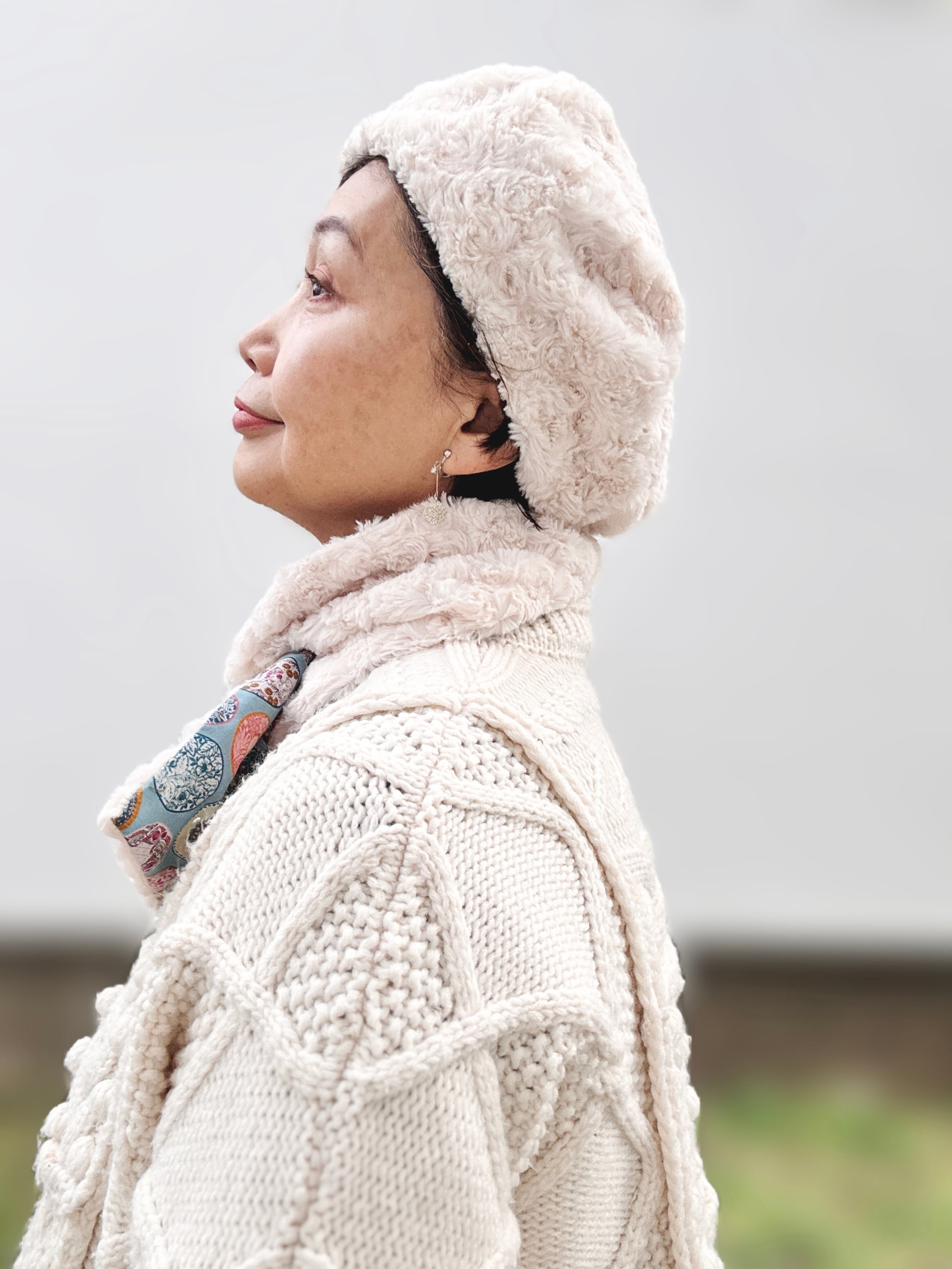 《 あったかローズボア ベレー帽 ケア帽子 》。