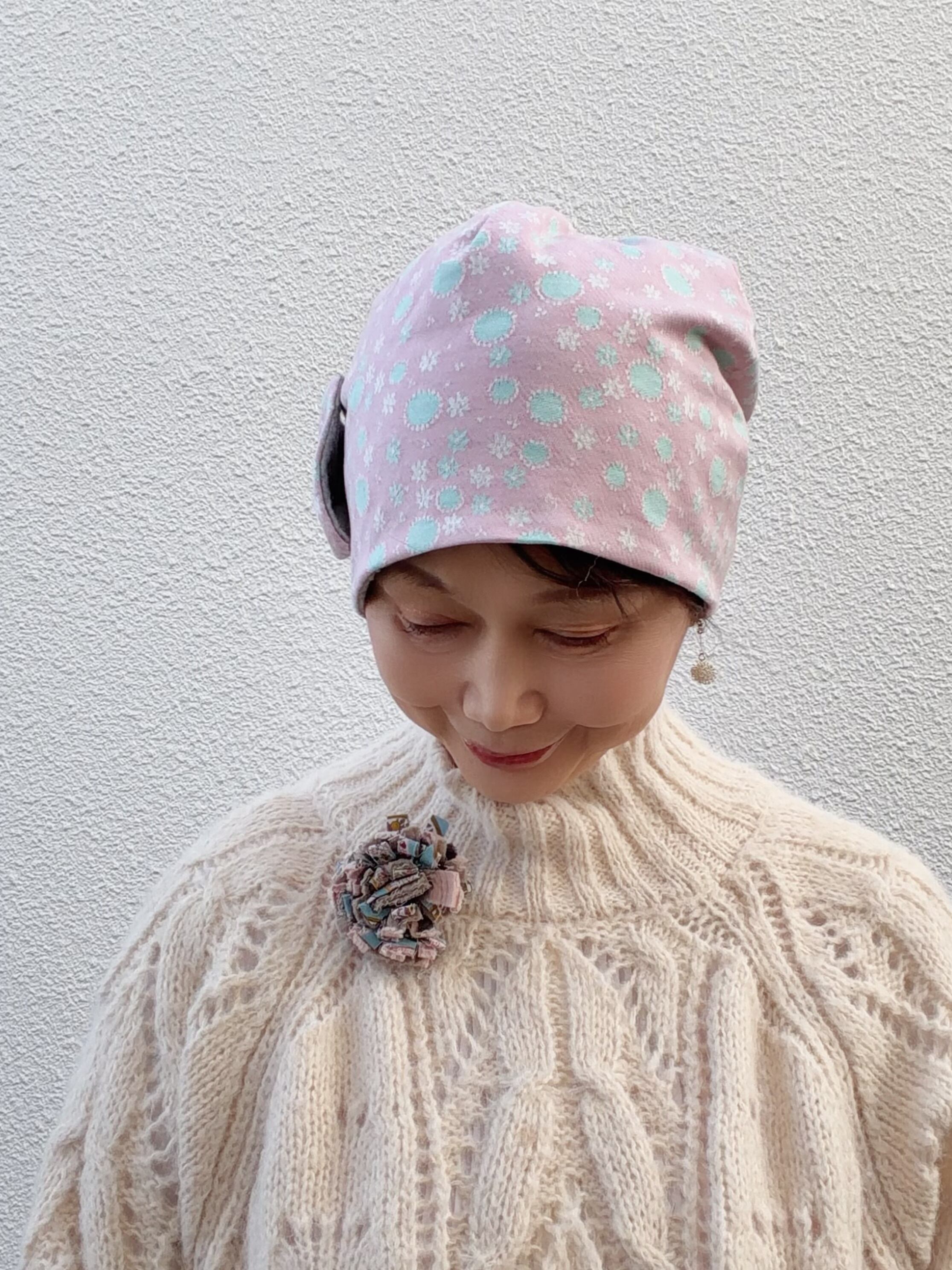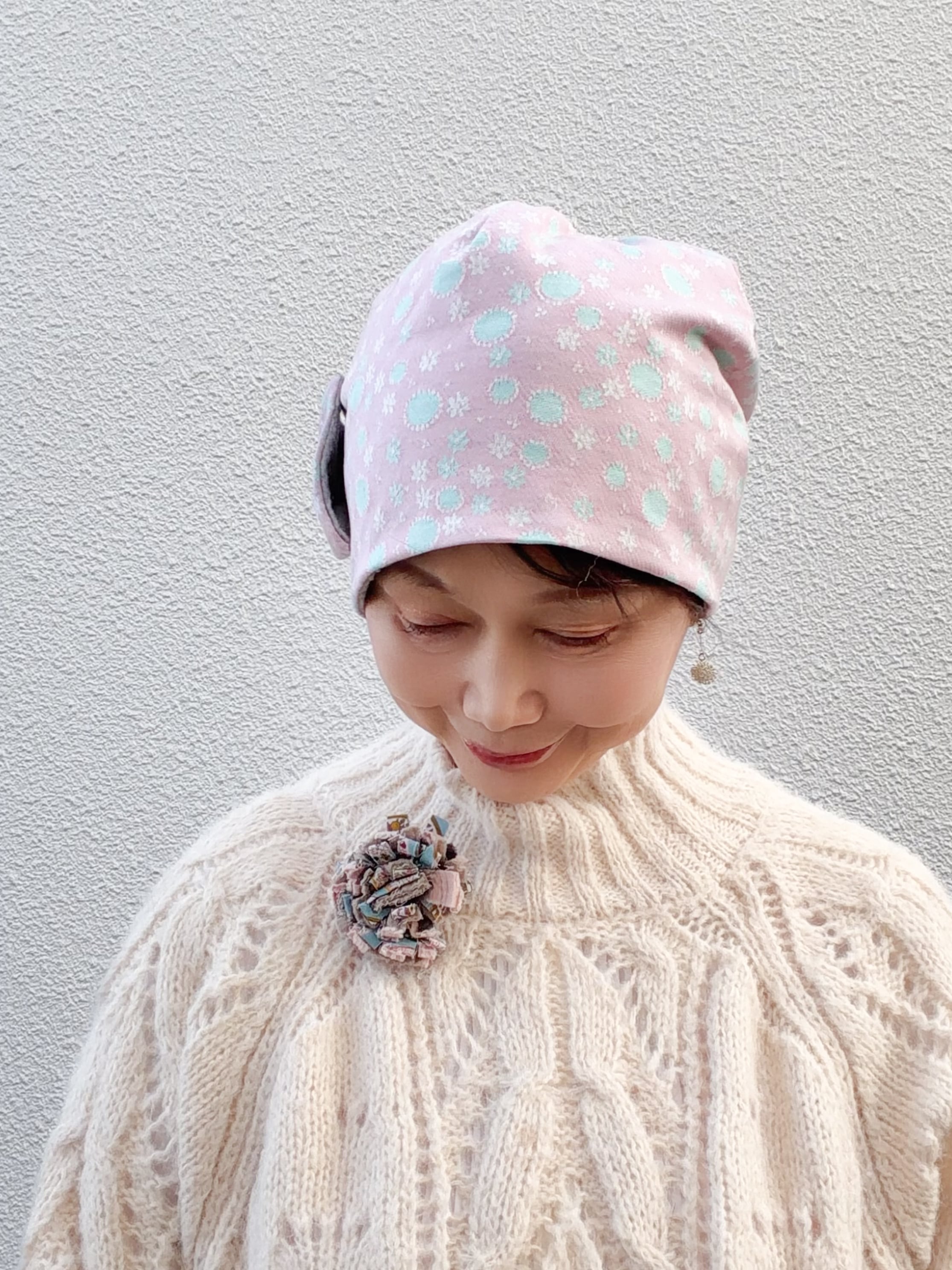 和らぎピンク リボン ケア帽子 室内帽子 ちょっとお出かけ用