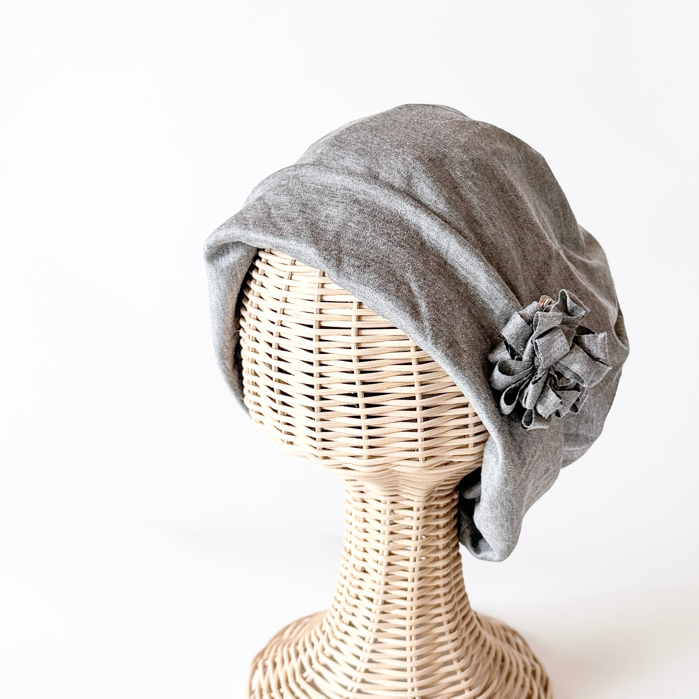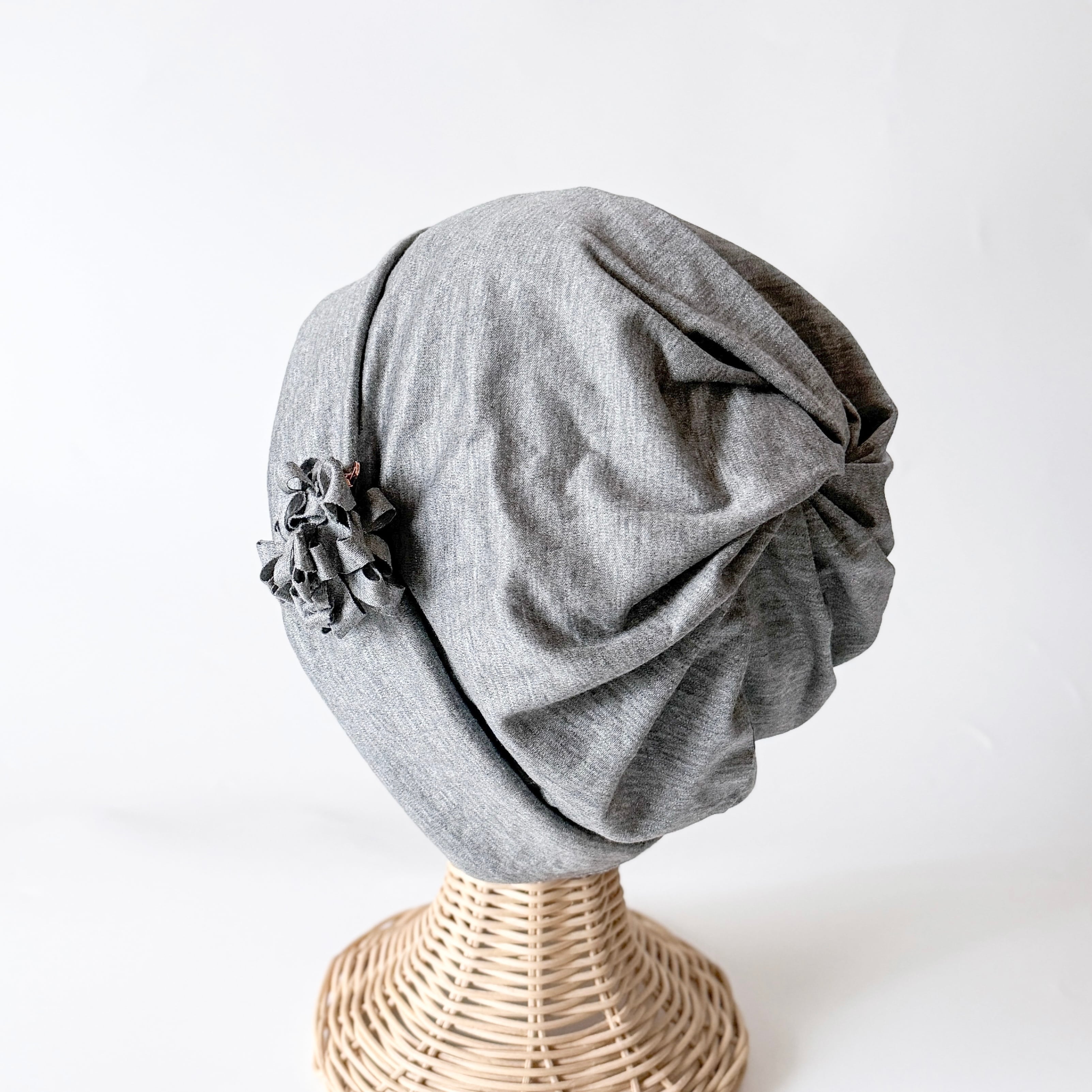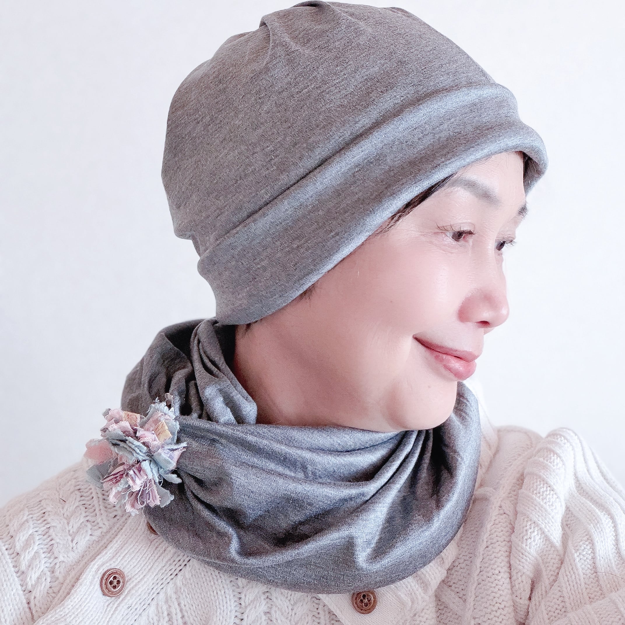 なめらかタッチ 2ウエイ ケア帽子 シルキータイプ 杢グレー ネックウォーマー プレゼント 入院帽子 柔らか