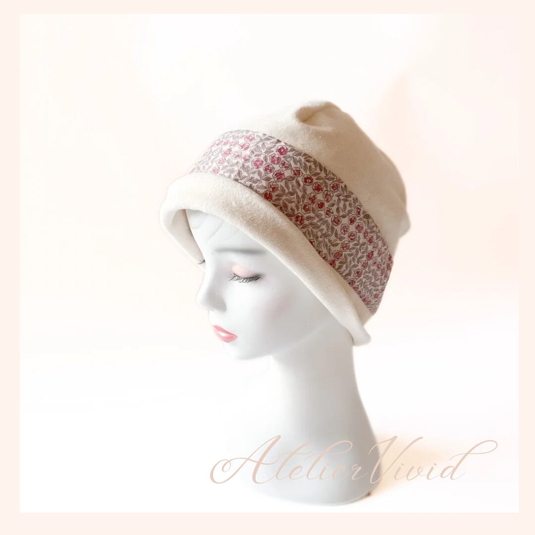 オーガニックケア帽子 リバティスリーピングローズ ピンク